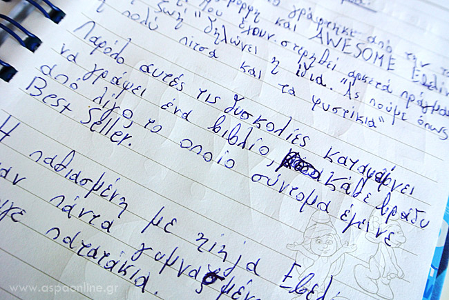 Πρόσφατα κάναμε μία κουβέντα για το θέμα και την προέτρεψα να μην περιμένει να μεγαλώσει για να γράψει βιβλίο, να αρχίσει να το γράφει ΤΩΡΑ. Και εκείνη με άκουσε και άρχισε ήδη να το γράφει. Ξεκίνησε όμως αντίστροφα. Από το (χιουμοριστικό φυσικά) βιογραφικό σημείωμα και τις ευχαριστίες! Ε τι; Ή πιστεύεις ότι το όνειρό σου θα γίνει πραγματικότητα ή δεν το πιστεύεις!