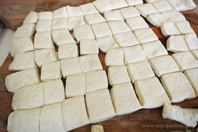 Κόβετε τη ζύμη σε τετράγωνα κομμάτια.