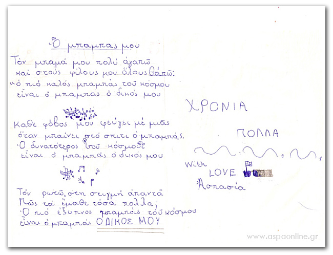 Κάρτα που είχα δώσει στον μπαμπά μου στη γιορτή του πατέρα, όταν πήγαινα στις πρώτες τάξεις του δημοτικού.