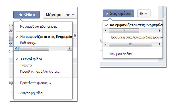 Πάντα υπάρχουν κάποιοι φίλοι και κάποιες σελίδες που θέλουμε να βλέπουμε συνεχώς και να μη χάνουμε κανένα από τα updates τους. Ας επισκεφτούμε λοιπόν ένα-ένα τα προφίλ ή τις σελίδες αυτές και ας κάνουμε την εξής διαδικασία.