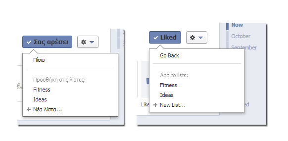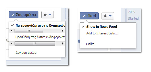 UPDATE: Τώρα, όταν πια περάσουμε τον κέρσορα πάνω από το κουμπί Like, εμφανίζεται και η επιλογή “Settings” ή “Ρυθμίσεις” όπως ακριβώς εμφανιζόταν ως τώρα στους φίλους. Εκεί ορίζουμε αν θέλουμε να παίρνουμε “Όλες τις ενημερώσεις”, “Τις περισσότερες ενημερώσεις”, “Μόνο οι σημαντικές ενημερώσεις”. (“All Updates”, Most Updates”, “Only important”.) Το πρoεπιλεγμένο είναι το “Τις περισσότερες ενημερώσεις.”
