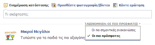 Βεβαιωνόμαστε ότι η ταξινόμηση στο News Feed μας γίνεται με κριτήριο τις πιο πρόσφατες ανακοινώσεις και όχι τις πιο σημαντικές (το σημαντικές είναι σύμφωνα με τα κριτήρια του facebook όχι τα δικά μας).