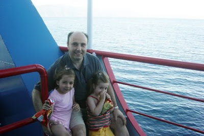 Στην φωτογραφία, ο Βασίλης και τα κορίτσια στο φέρυ-μπωτ της επιστροφής.