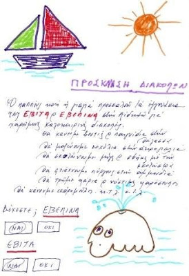 Τα κορίτσια έλαβαν «επίσημη» πρόσκληση για καλοκαιρινές διακοπές! Η ιδέα της πρόσκλησης ήταν του Βασίλη και η υλοποίηση καθώς και το περιεχόμενο, της γιαγιάς! Η πρόσκληση γράφει τα εξής: